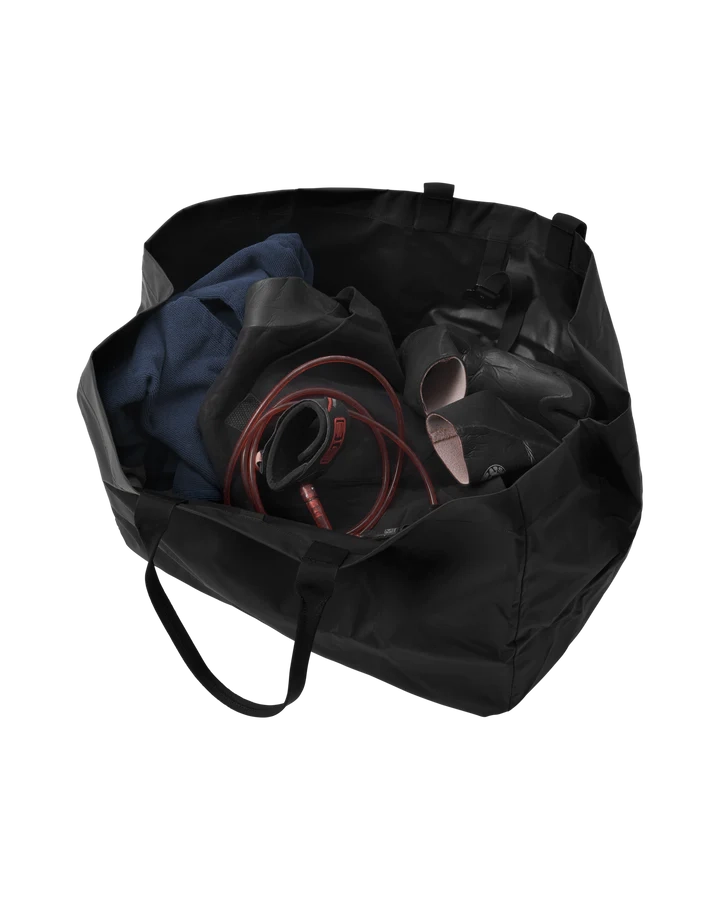 Mångsidig tote bag i återvunnen polyester från Scandinaviska DB på 80 Liter, och har en vattentät konstruktion med limmade sömmar.
