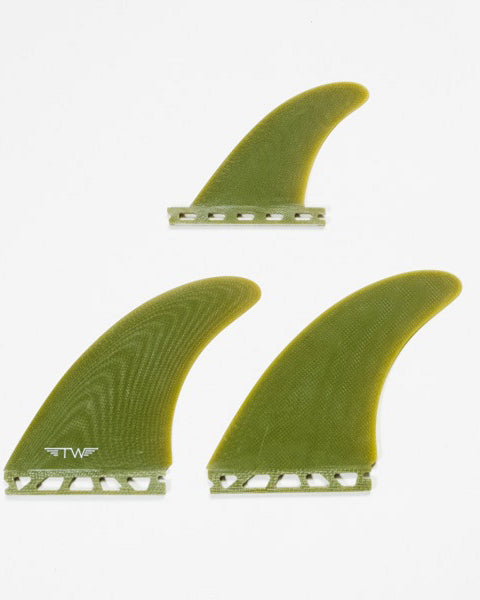 - Raked template for maximum down the line speed and smooth rail to rail surfing. He also added a trailer fin for stability and more drive. This will perfect the glide of any twin fin board.