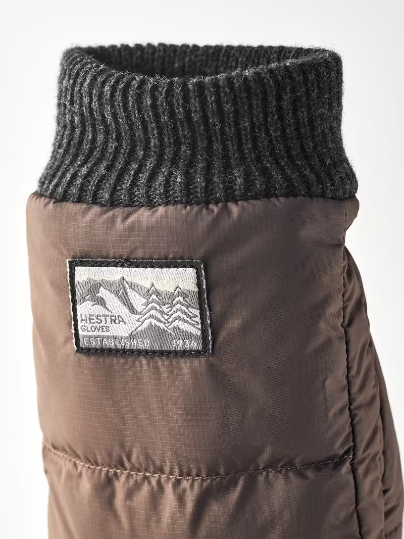 Lätt och värmande tumhandske från Svenska Hestra, med quiltade detaljer som ger ett retroinspirerat uttryck, sydd i smidig ripstopväv av polyamid som är vindtät och vattenavvisande.