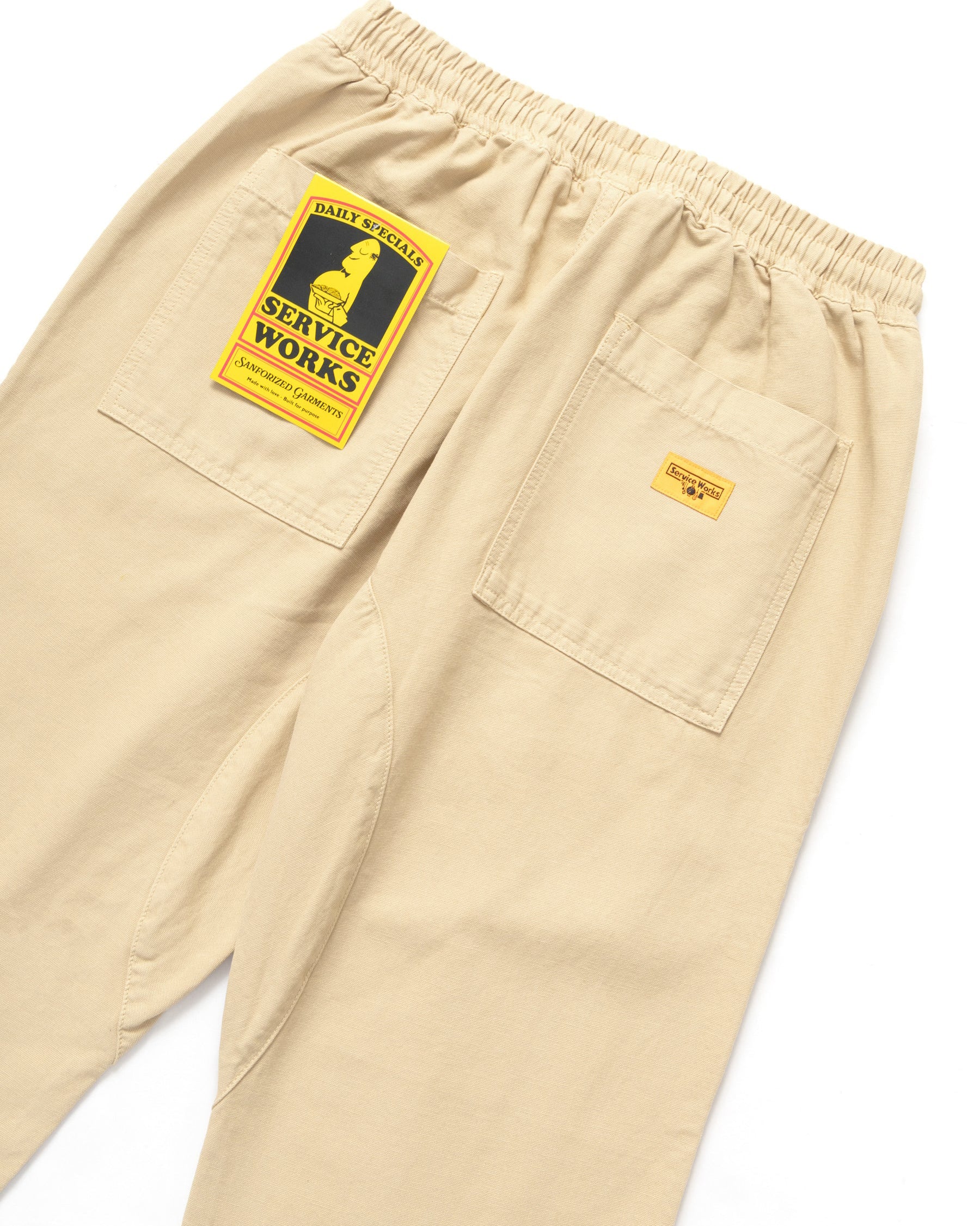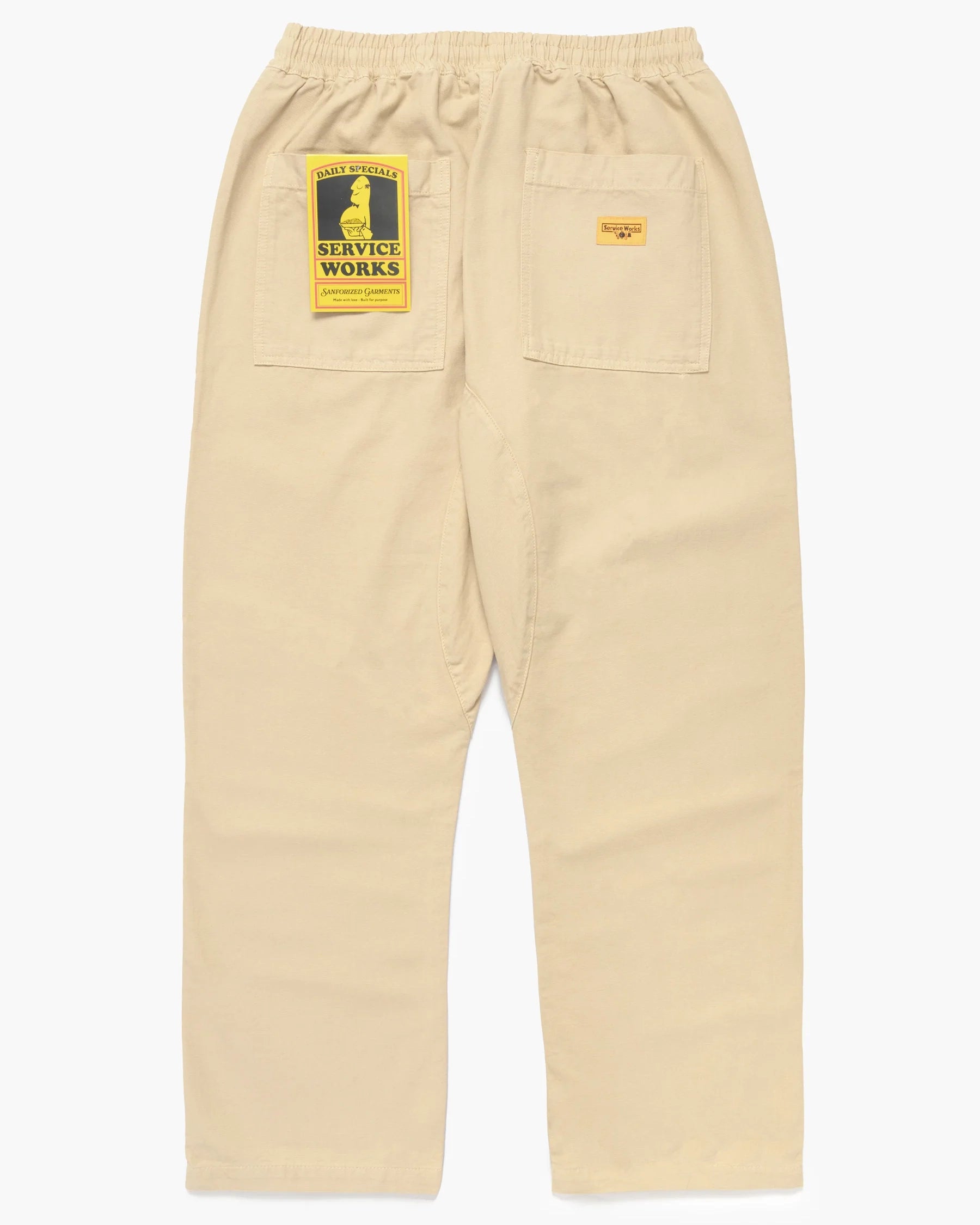 Canvas Chef Pant från Service Works, tillverkade i organisk bomullscanvas, elastisk midja med dragsko, byxan har en avslappnad rak passform.