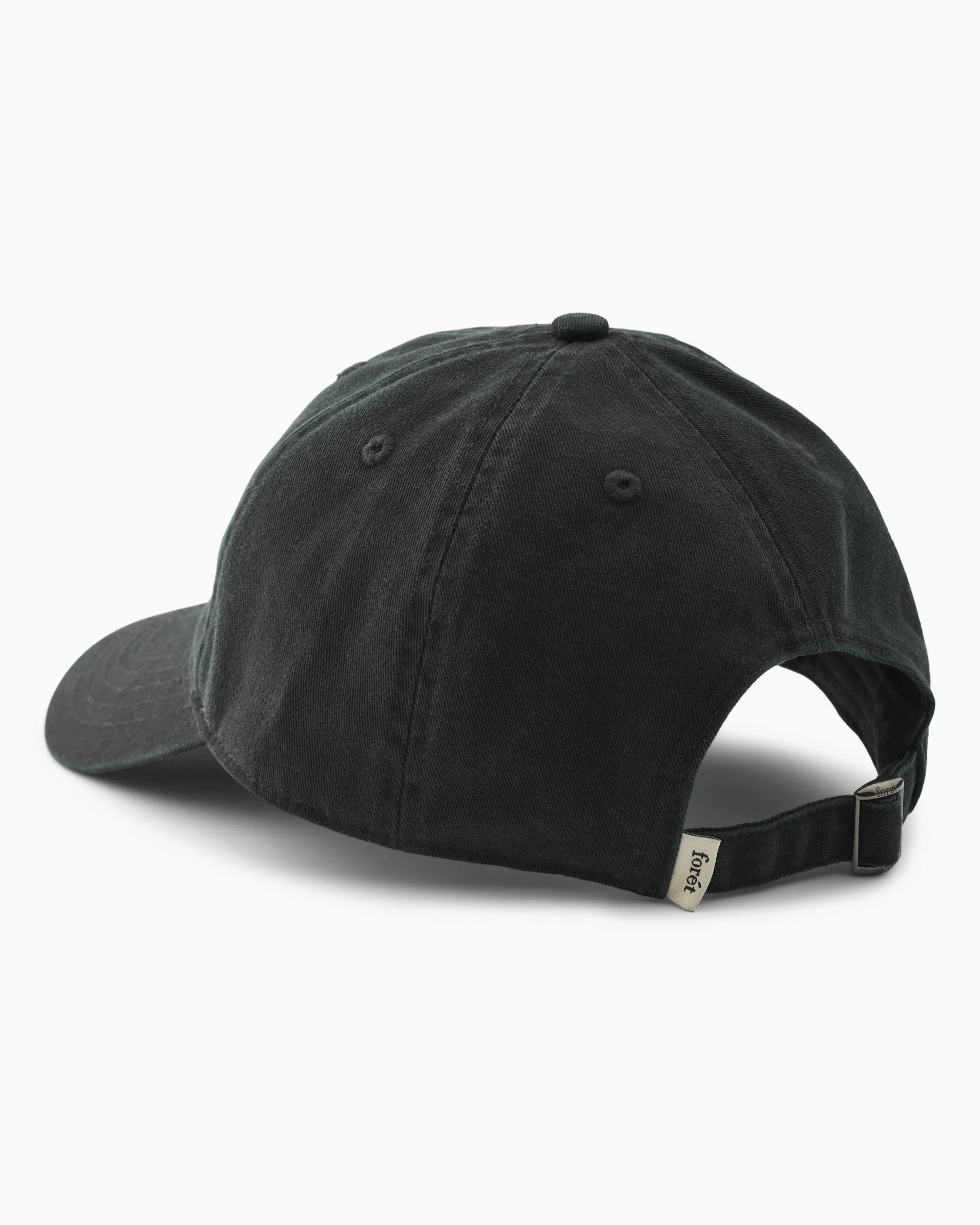 Element Mug Washed Cap från Foret, en tvättad avslappnad basebollkeps med brodyr framtill, tillverkad av bomull med en justerbar rem baktill.