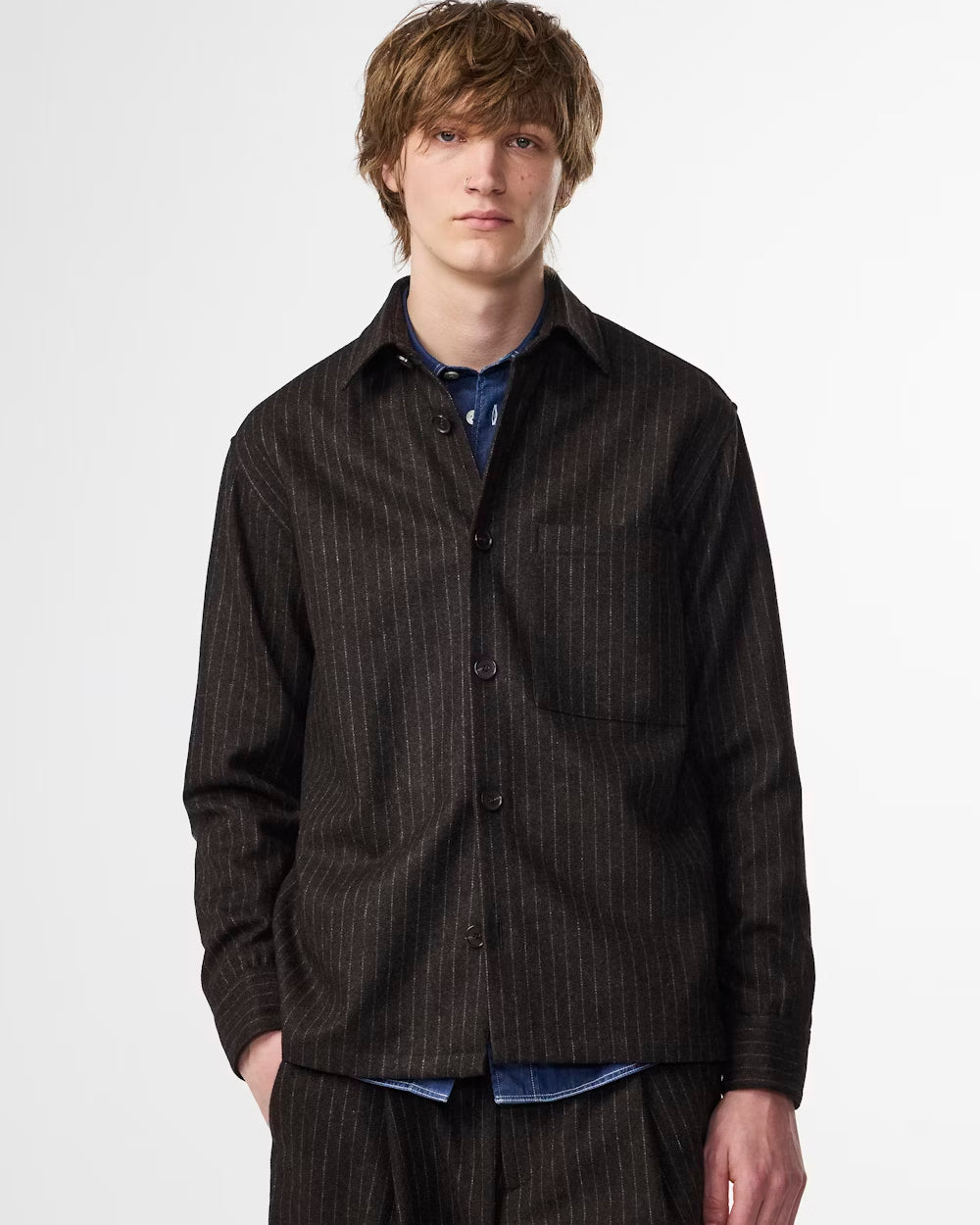 Freddy 1630 från NN07 är en hybridjacka i regular fit, tillverkad av återvunnen italiensk ullblandning twill. Designad med en knappstängning och en patchad bröstficka.