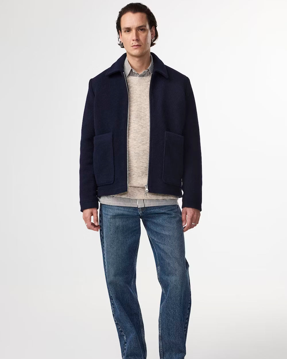 Geal 8267 från NN07 är en ulljacka man kan skymta i serien "The Bear", bärs stilrent av kocken Carmen ( Jeremy Allen White) designat med en regular passform, diskreta fickor med dragkedjestängning är dolda i bomullsfodret på båda sidor av bröstet. Varje jacka är unik på grund av variationen i tygjusteringen under skärprocessen.