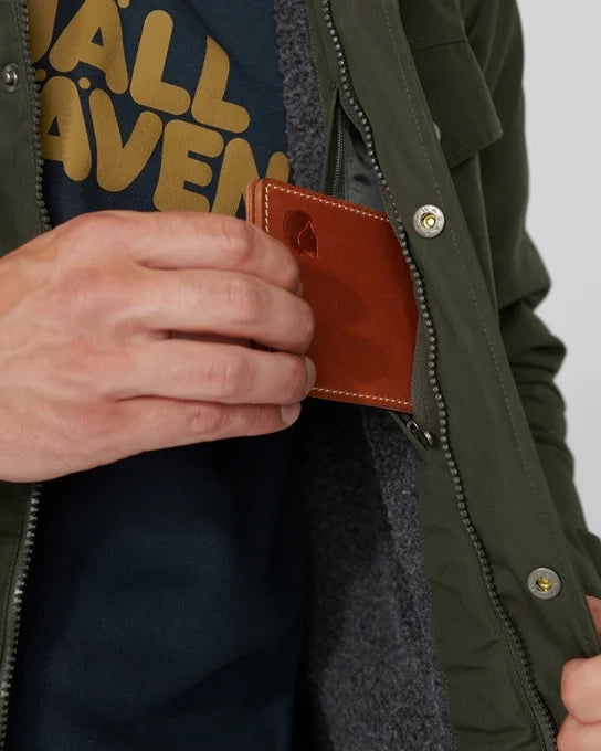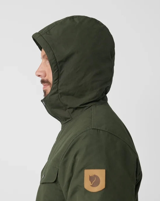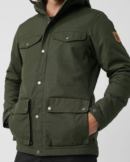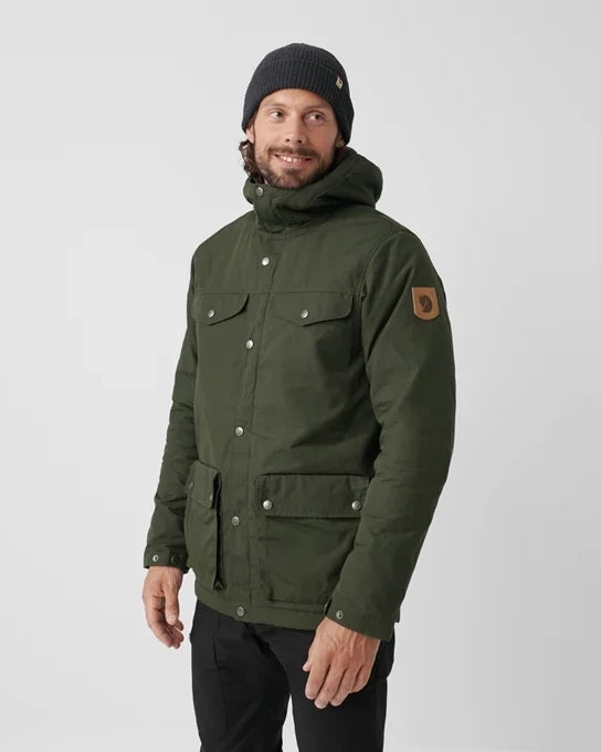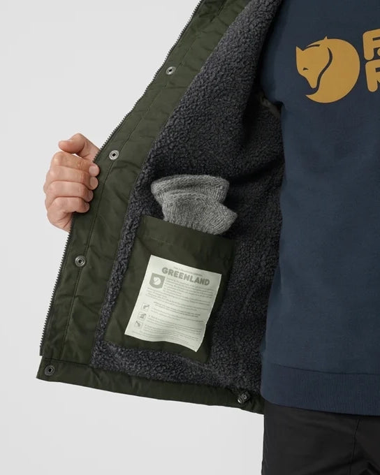 En klassisk vinterjacka från Fjällräven i G-1000 tyg och och med en insida i värmande teddyfoder.