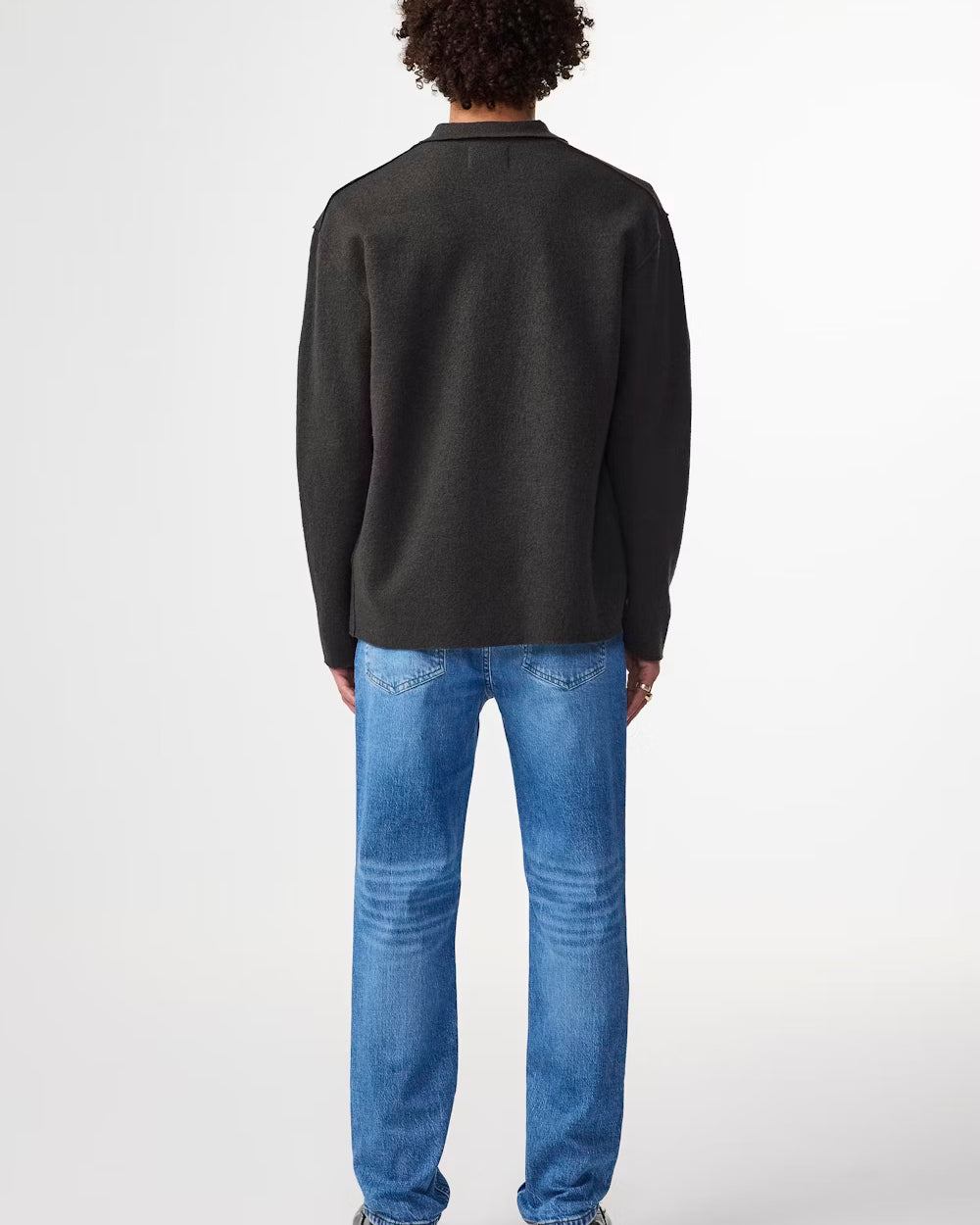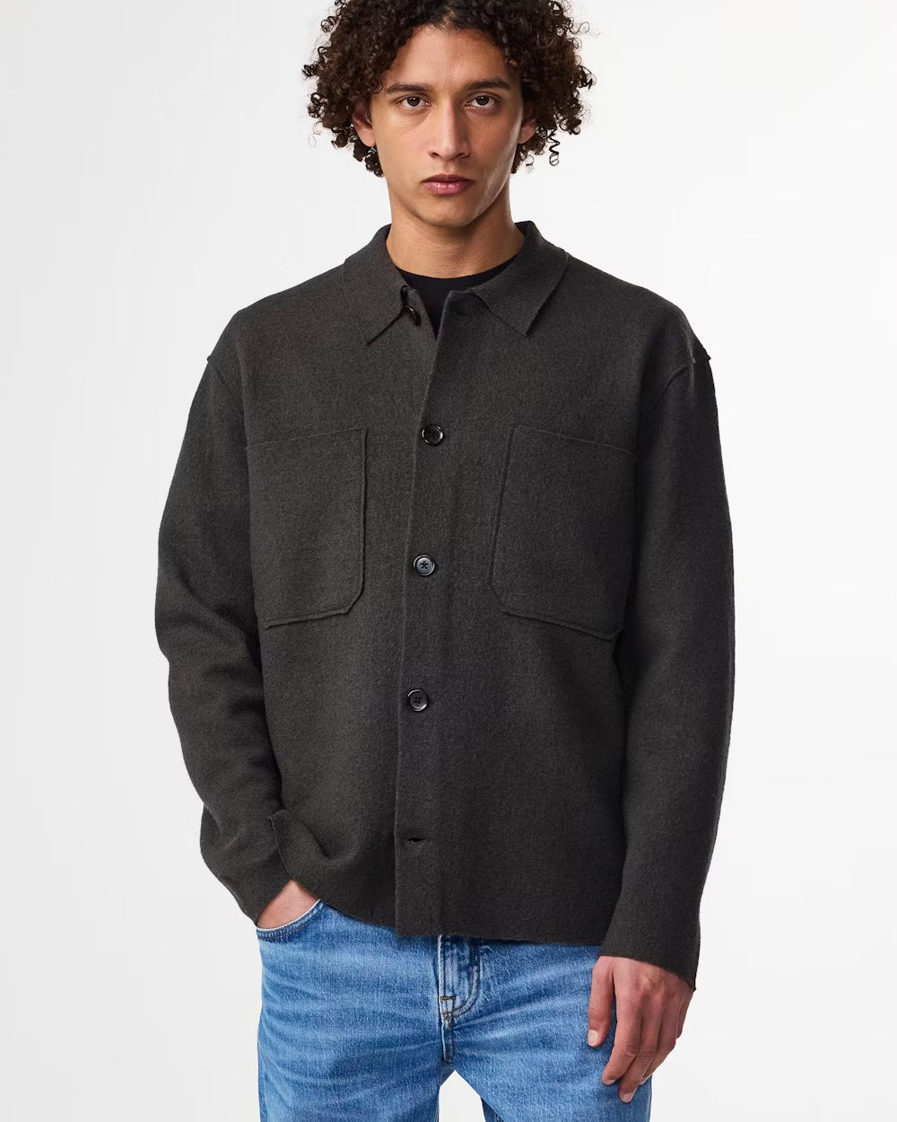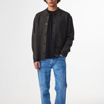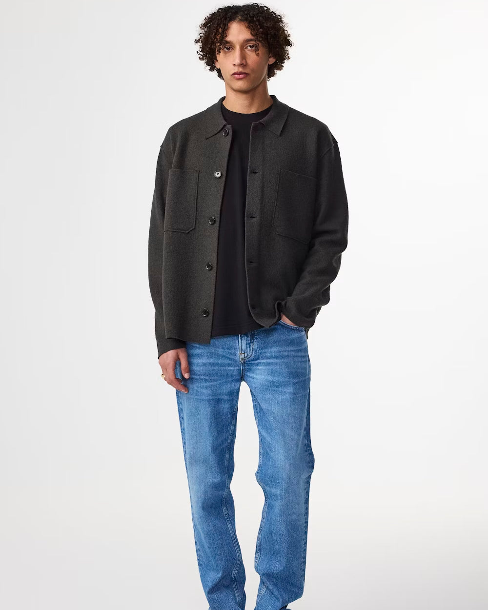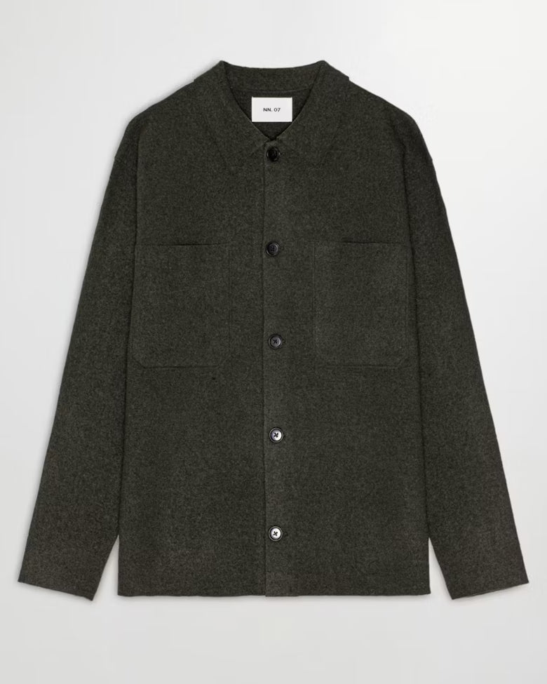 Jonas 6398 från NN07, är en overshirt tillverkad i en mjuk merinoull, designad med en skjortkrage, råa kanter och NN.07-logotypknappar.