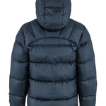 - Jackan har ett slitstarkt yttertyg (förstärkt med syntetfyllning över axlar) med PFC-fri impregnering. Den är fylld med högkvalitativt, etiskt producerat dun. Samtliga dunkanalar är genomsydda.
