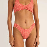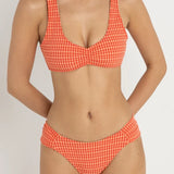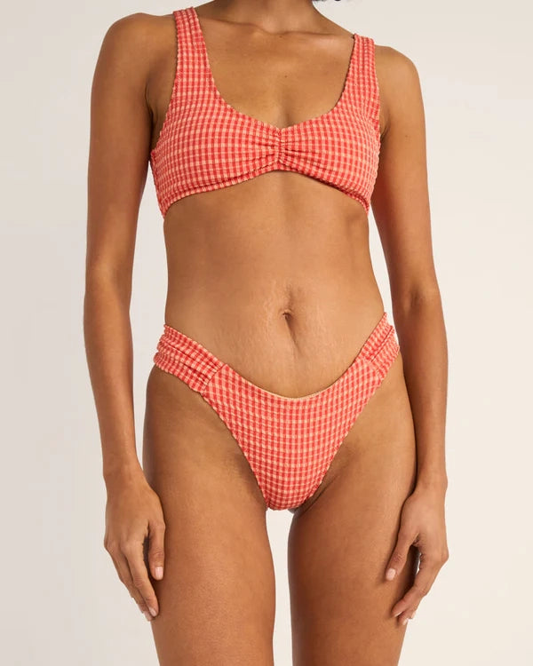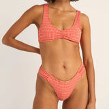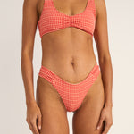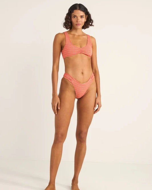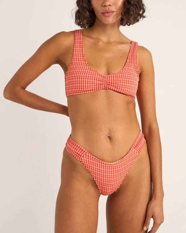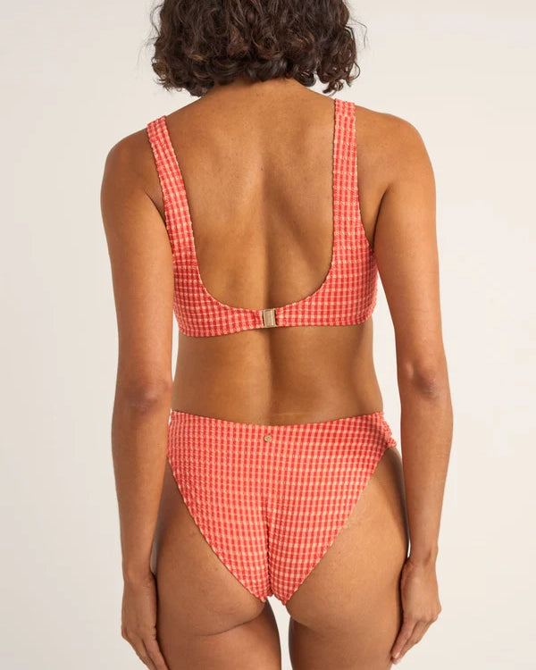Lola Check set från Rhythm, tillverkad av återvunnen polyamid och består av delarna check crop top och holiday pant.