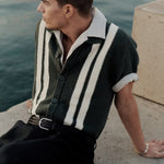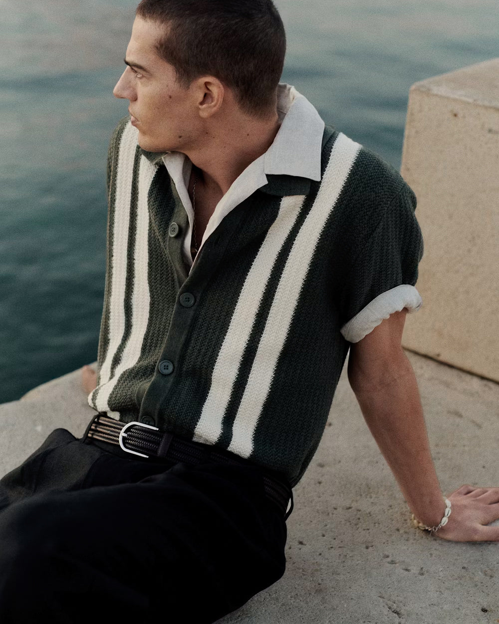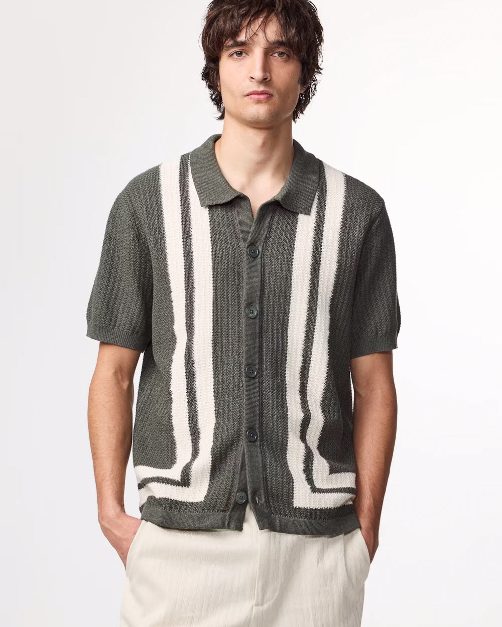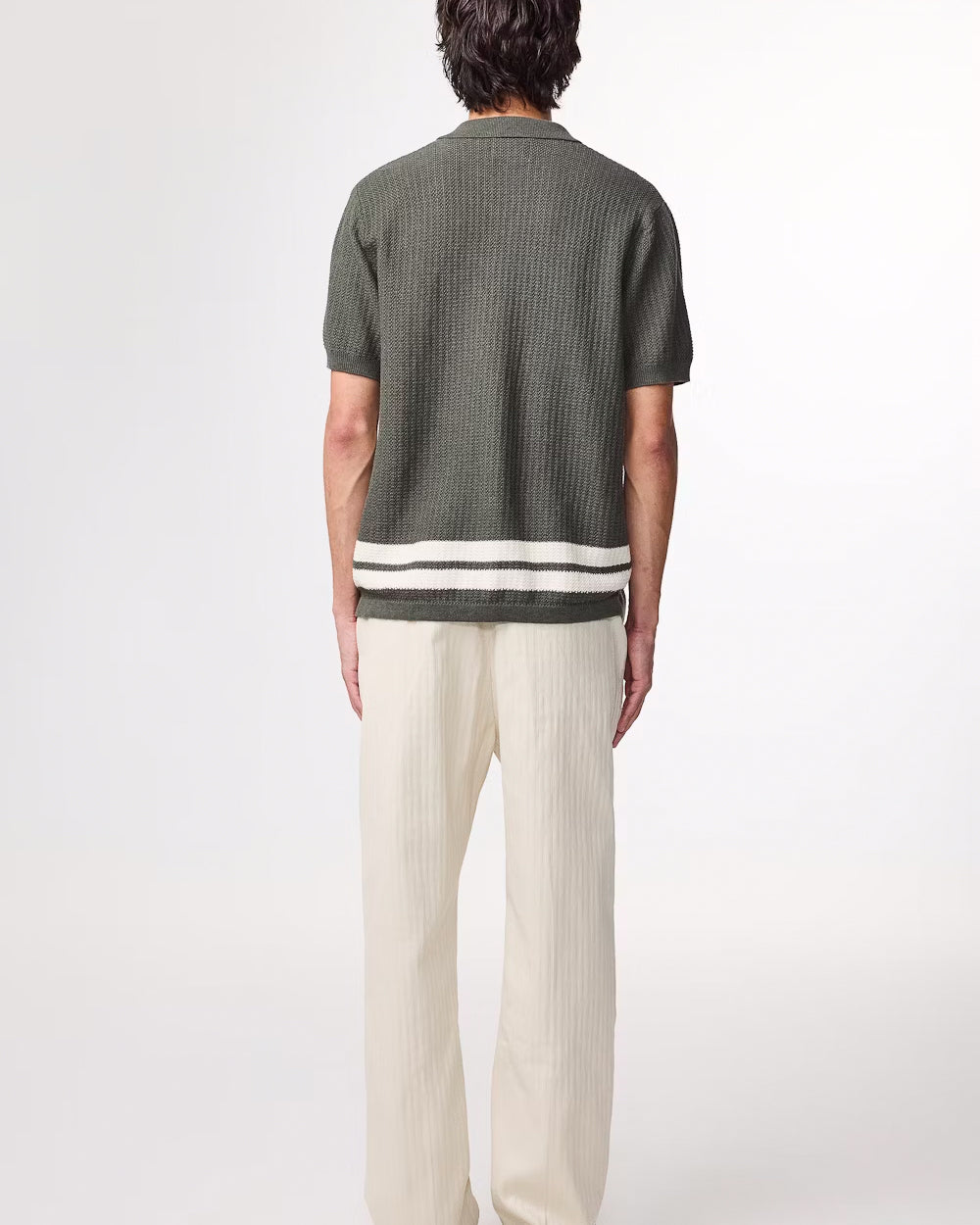 Ares knit från NN07, mjuk ekologisk bomull, stickad i strukturerad söm med randiga detaljer och avslutad med matchande pärlemorknappar.