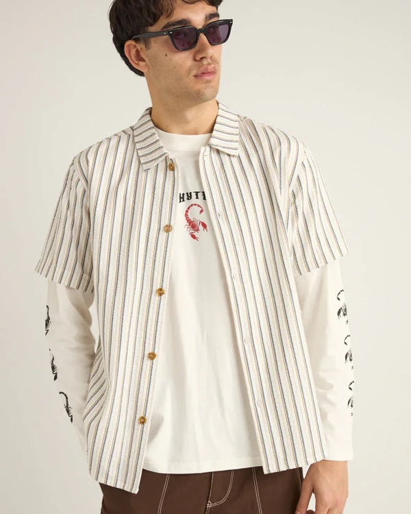 Seersucker Stripe SS Shirt från Rhythm, tillverkad i 100% bomull och är tvättad för en vintage utseende.