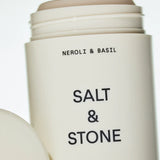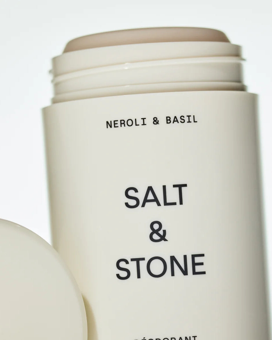 Prisbelönt deodorant från Salt & Stone, för 48 timmars skydd, helt fri från parabener, alkohol och aluminium.