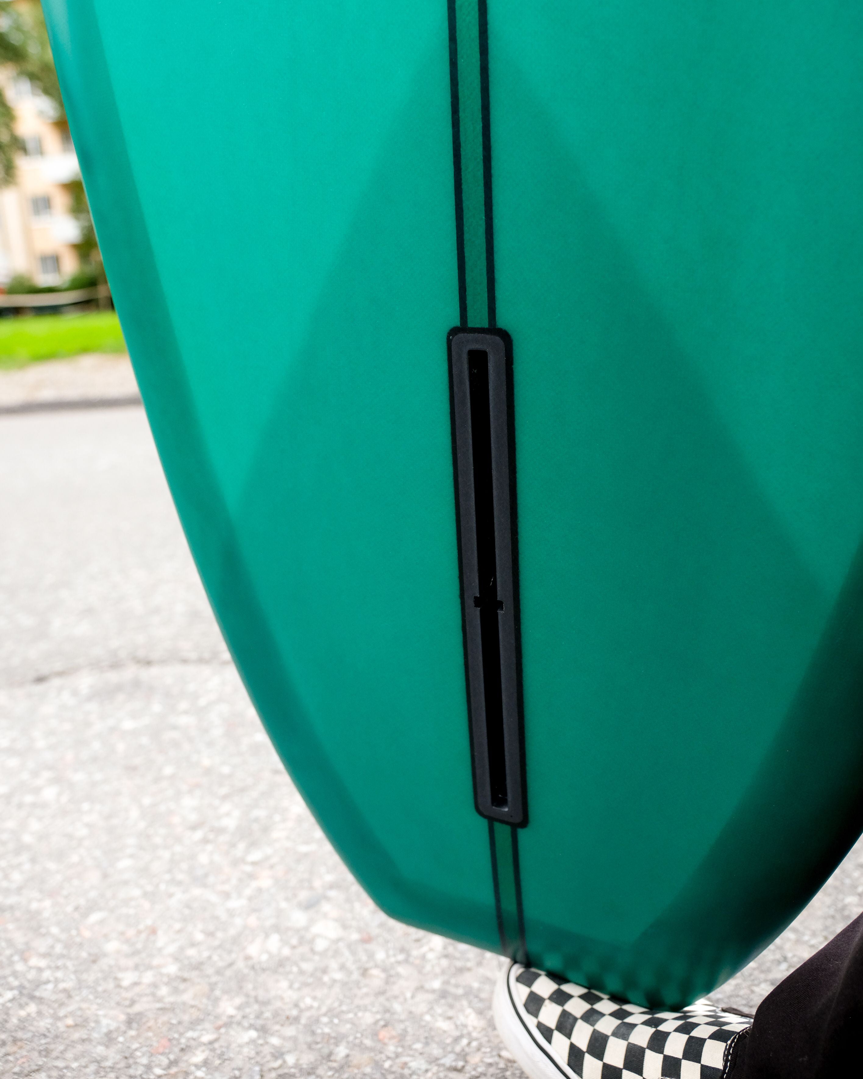 The custom made rocker, rather flat from tail to the middle, still got a slight kick in the back and will ensure you get that constant speed and at same time elevating while on the tip."–Chris Christenson