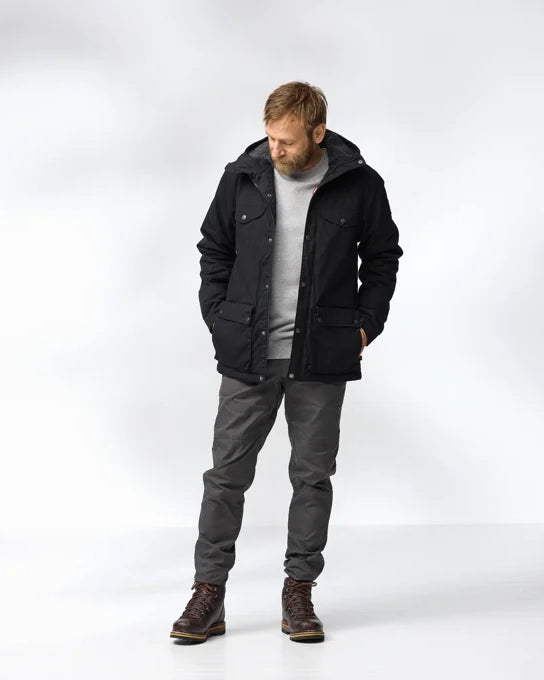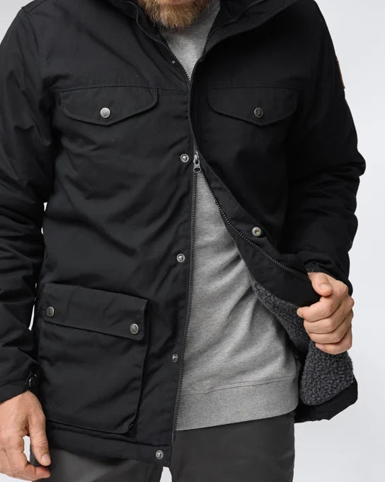 En klassisk vinterjacka från Fjällräven i G-1000 tyg och och med en insida i värmande teddyfoder.