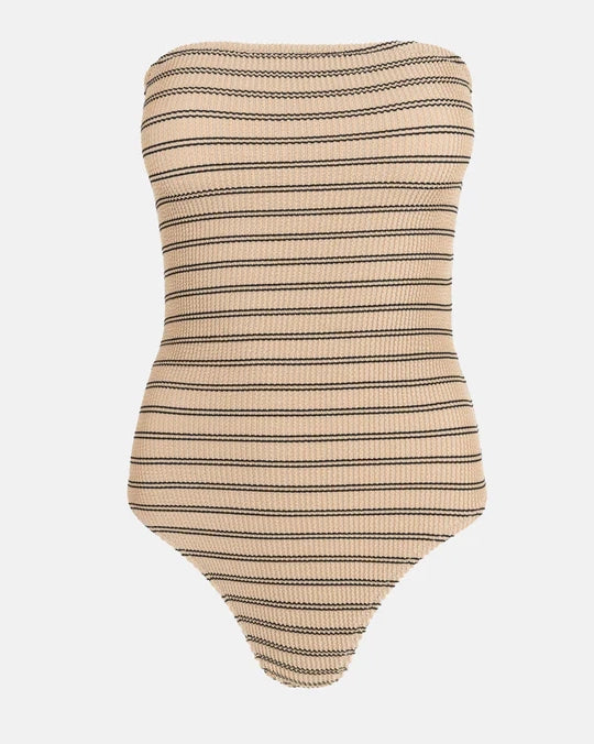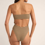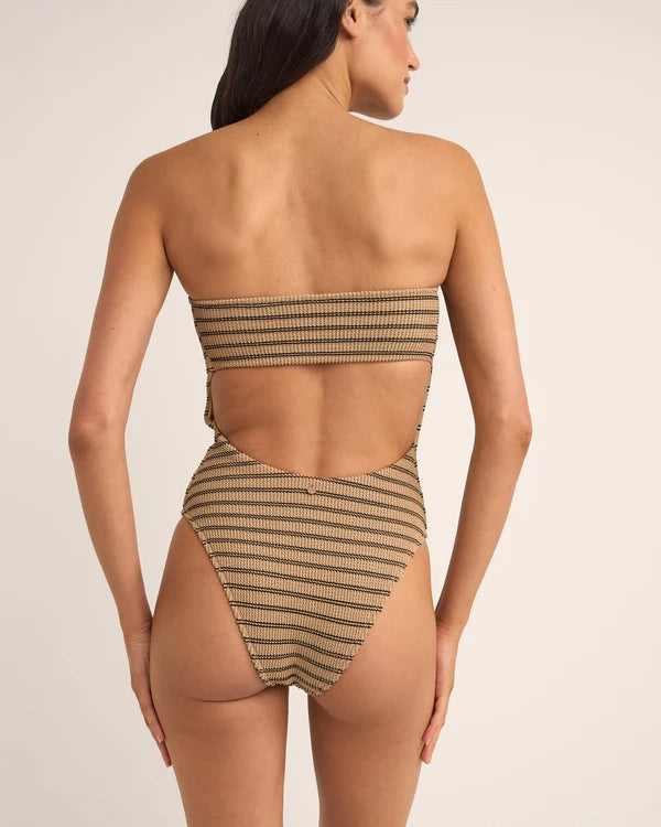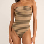 Sol Stripe One Piece från Rhythm, en ärmlös elegant baddräkt sydd i zigzag mönster, tillverkad i polyester och spandex för stretch.